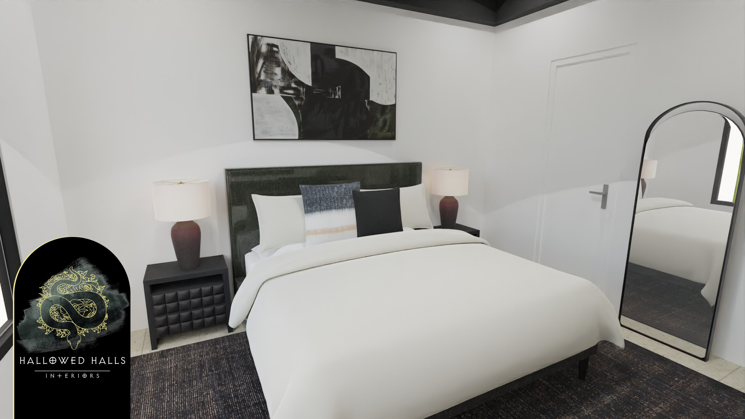 -Design does not include specific art or small décor selection, but will have various generic place holders to show the mood and full style of the space